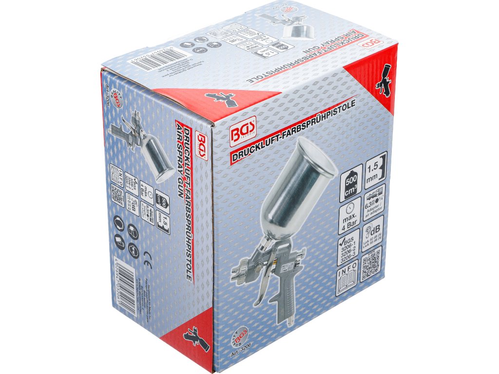 Nízkotlaková striekacia pištoľ HVLP, 500 ml, 1,5 mm tryska