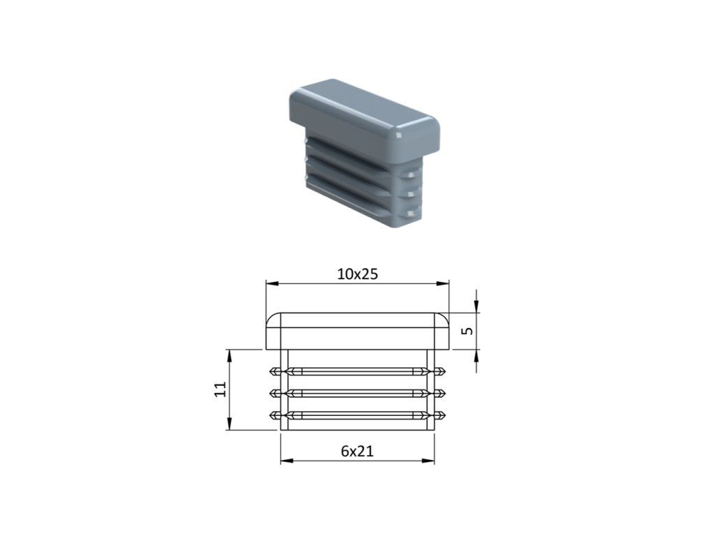Krytka plastová 10 x 25 mm, sivá
