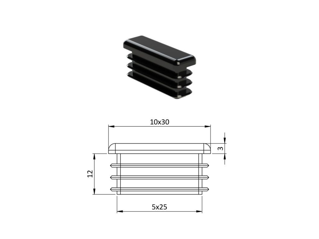 Krytka plastová 10 x 30 mm, čierna
