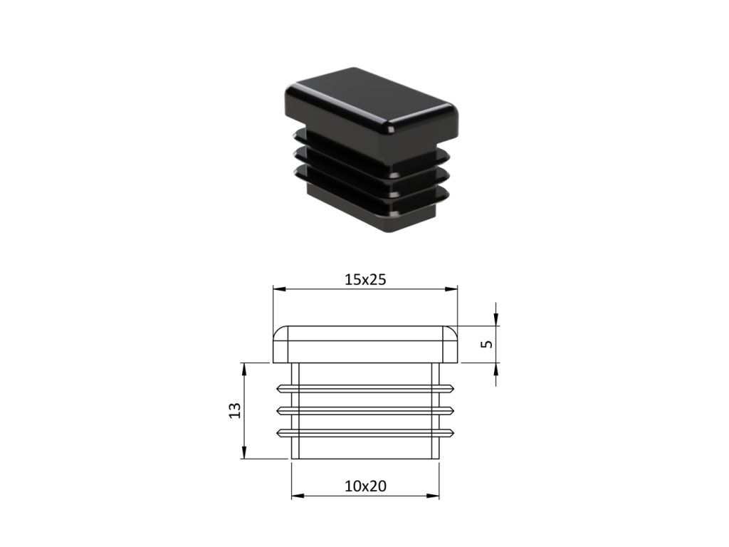 Krytka plastová 15 x 25 mm, čierna