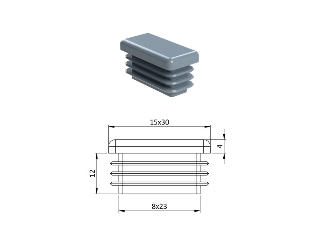Krytka plastová 15 x 30 mm, sivá