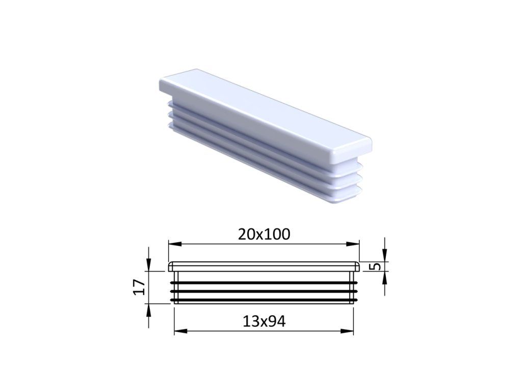Krytka plastová 20 x 100 mm, biela