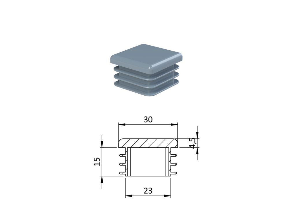 Krytka plastová 30 x 30 mm, sivá