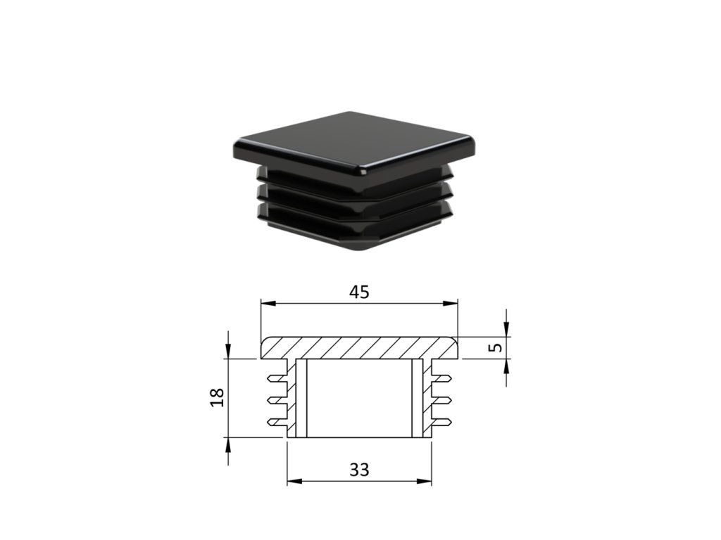 Krytka plastová 45 x 45 mm, čierna