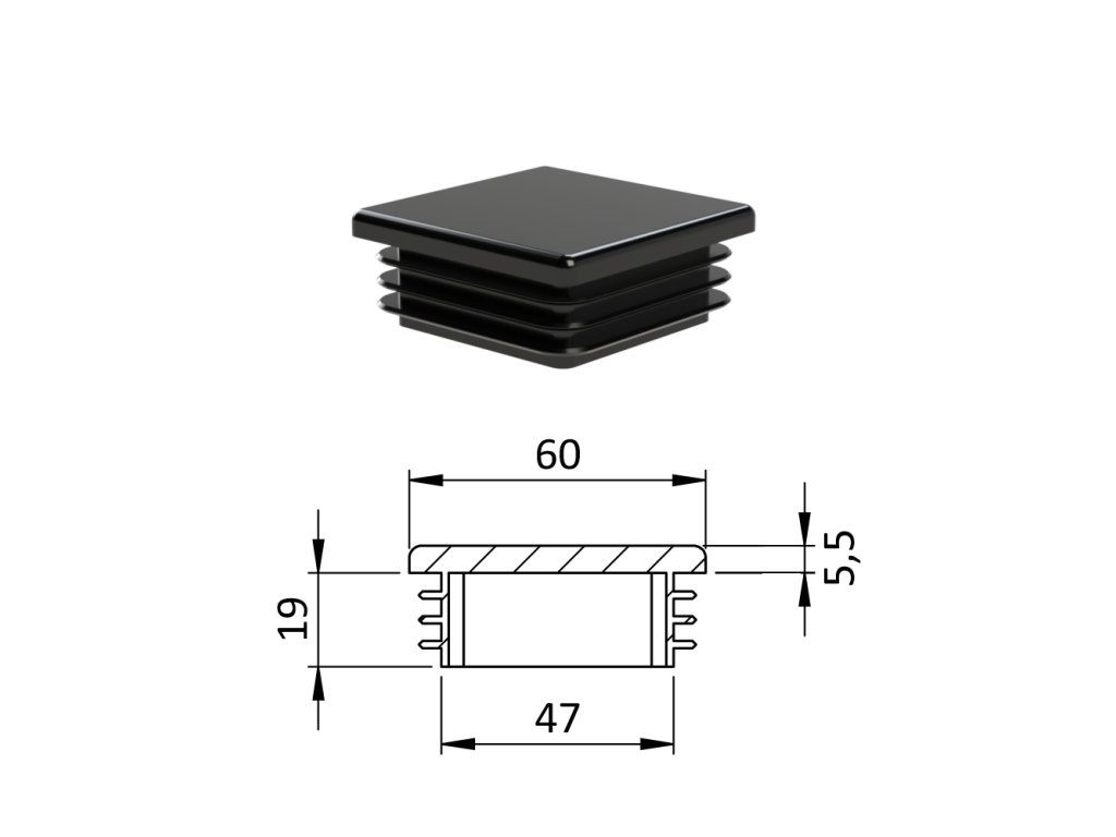 Krytka plastová 60 x 60 x 3 - 5 mm, černý