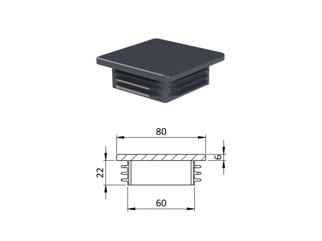 Krytka plastová 80 x 80 x 5 - 8 mm, antracit
