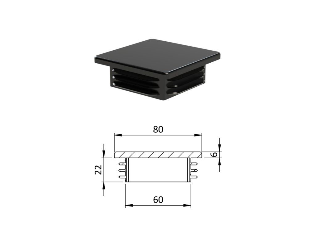 Krytka plastová 80 x 80 x 5 - 8 mm, čierna