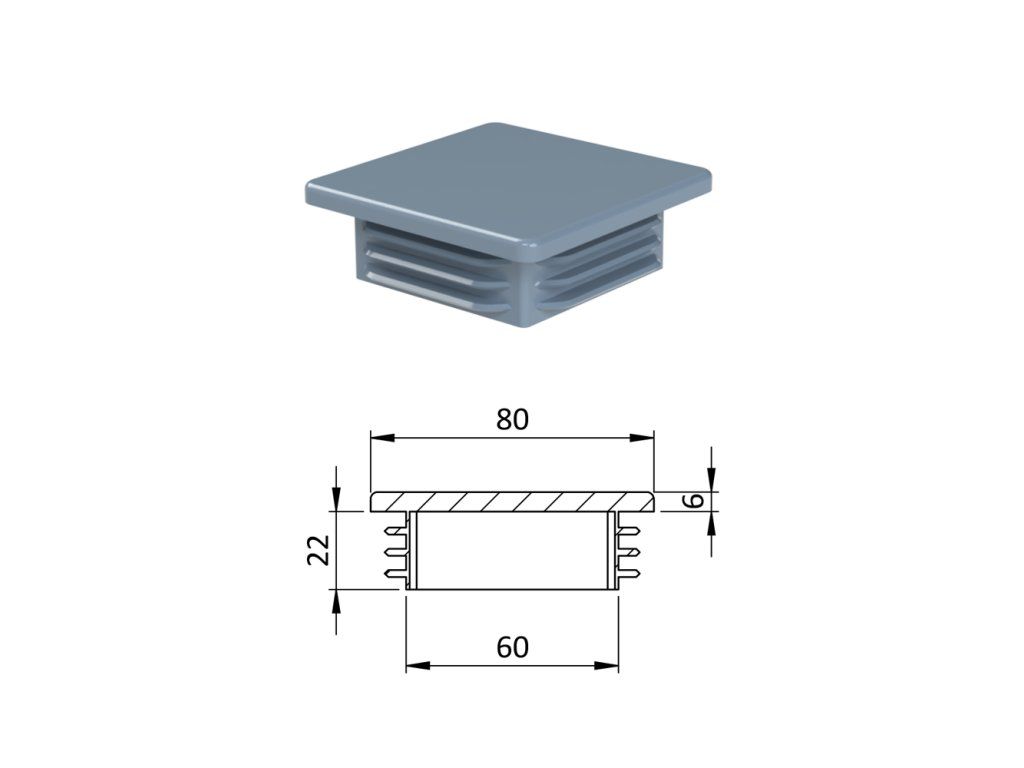 Krytka plastová 80 x 80 x 5 - 8 mm, sivá