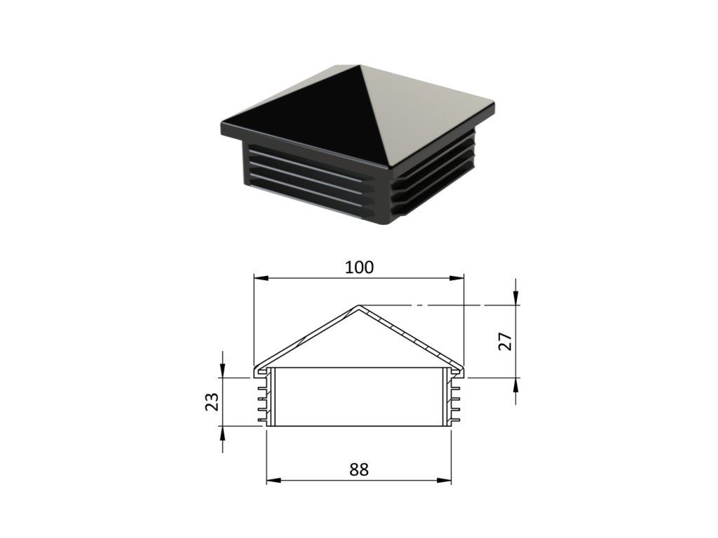 Krytka plastová so strieškou 100 x 100 mm, čierna