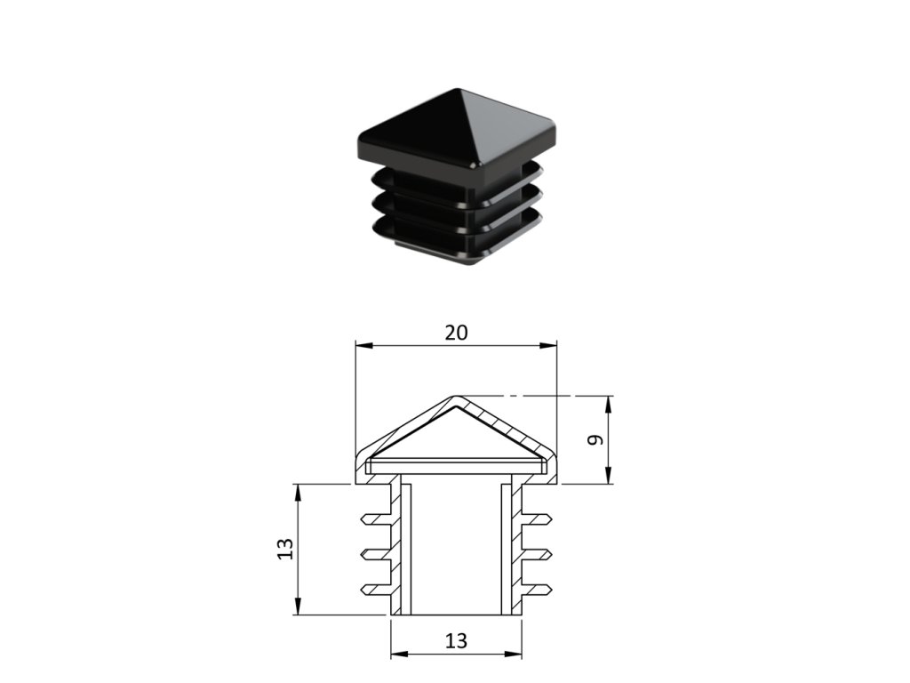 Krytka plastová so strieškou 20 x 20 mm, čierna