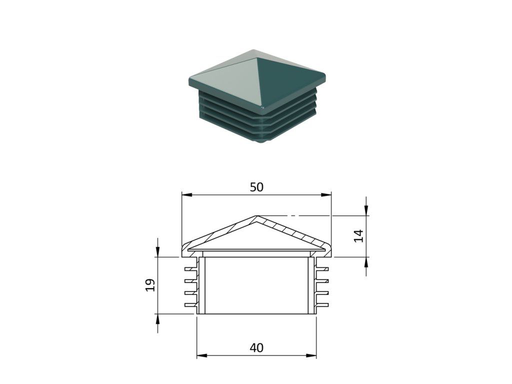 Krytka plastová so strieškou 50 x 50 mm, zelená