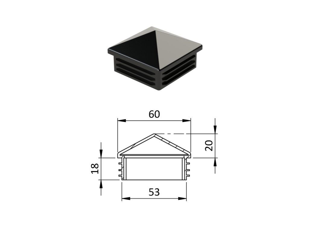Krytka plastová so strieškou 60 x 60 mm, čierna