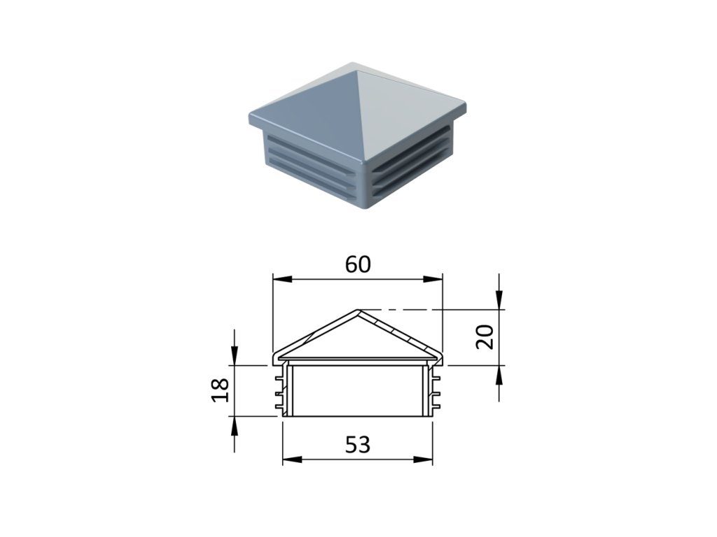 Krytka plastová so strieškou 60 x 60 mm, sivá