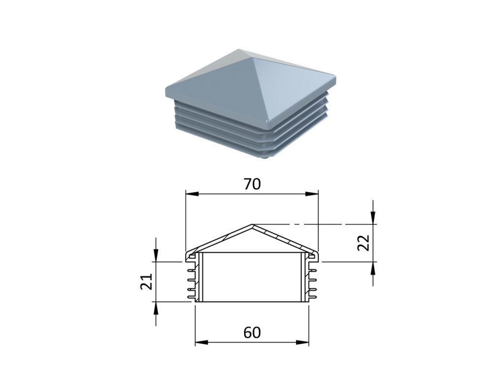 Krytka plastová so strieškou 70 x 70 mm, sivá