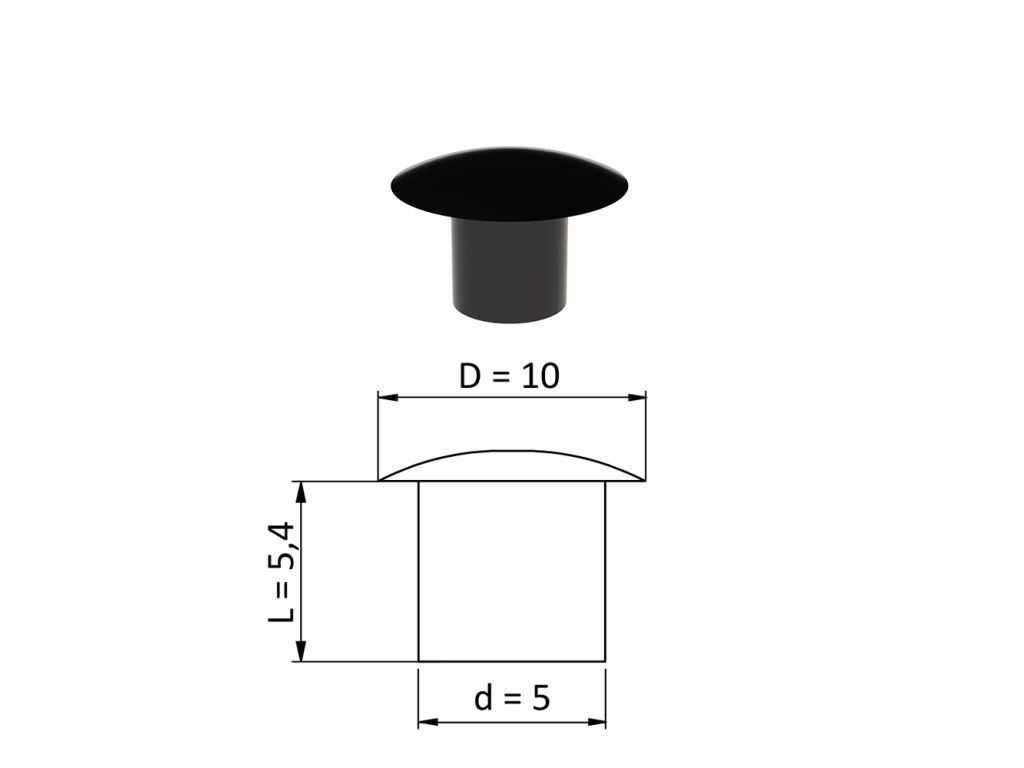 Vnútorná krytka guľatá ø 10 mm, otvor ø 5 mm, čierna, plast
