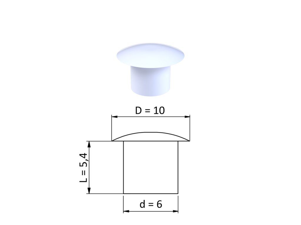 Vnútorná krytka guľatá ø 10 mm, otvor ø 6 mm, biela, plast