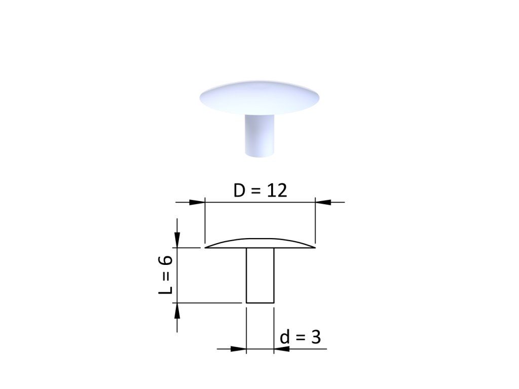 Vnútorná krytka guľatá ø 12 mm, otvor ø 3 mm, biela, plast