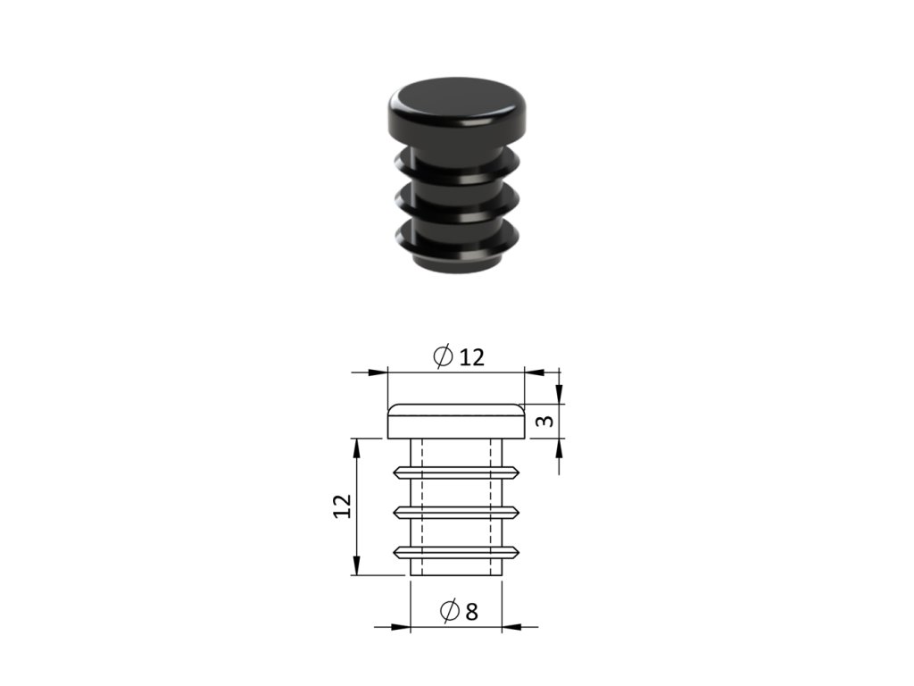 Vnútorná krytka guľatá ø 12 mm, plastová, čierna