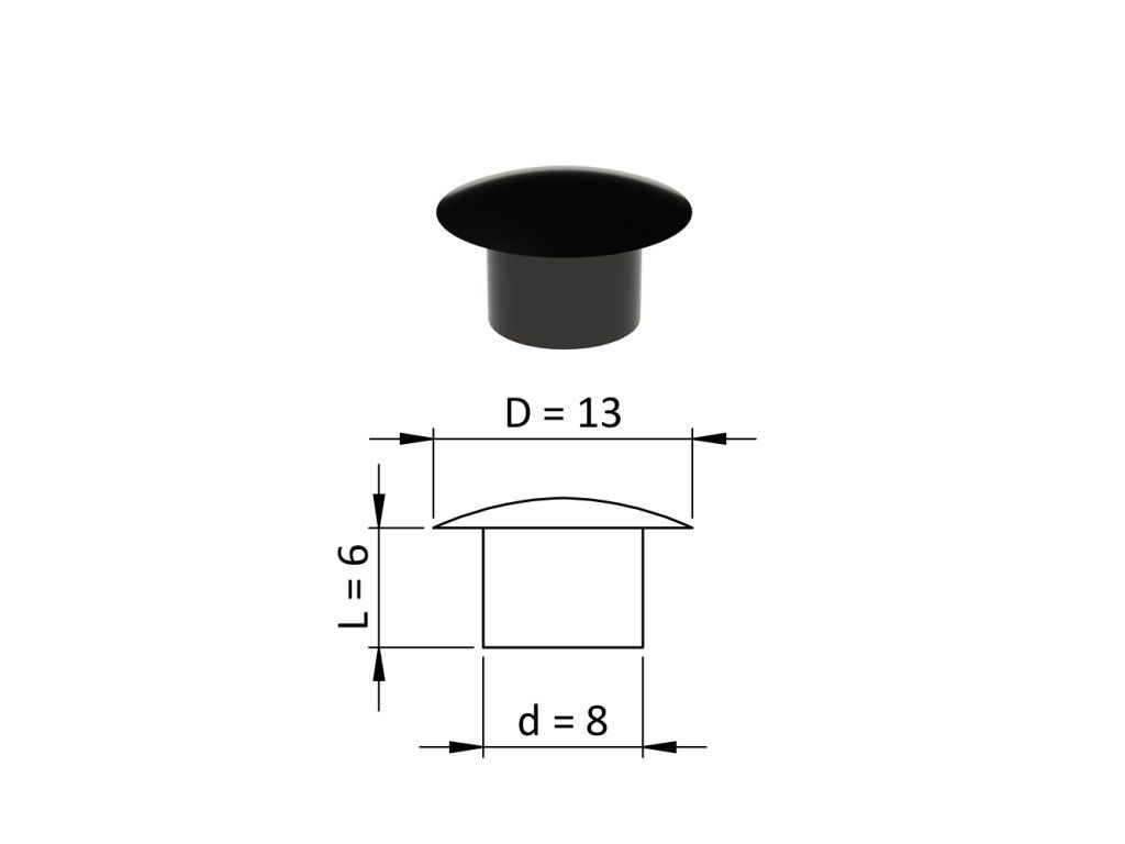Vnútorná krytka guľatá ø 13 mm, otvor ø 8 mm, čierna, plast