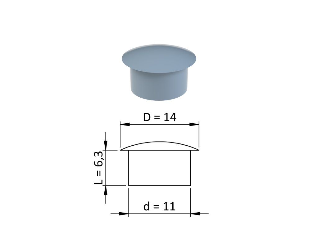 Vnútorná krytka guľatá ø 14 mm, otvor ø 11 mm, sivá, plast