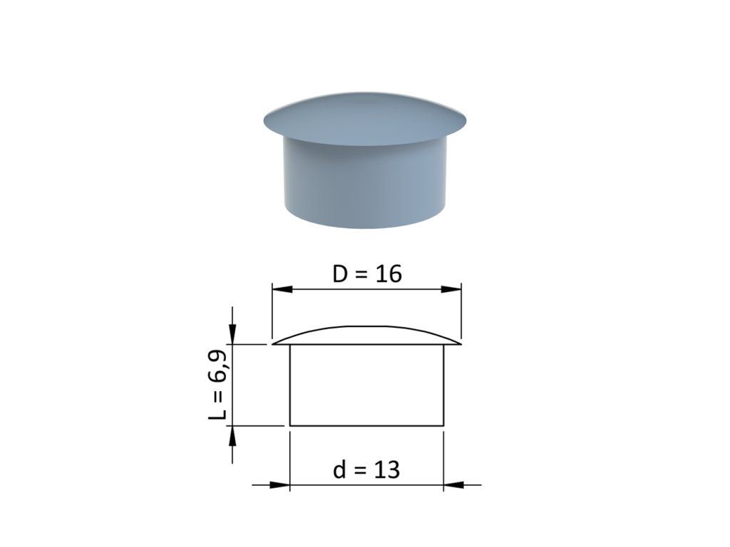 Vnútorná krytka guľatá ø 16 mm, otvor ø 13 mm, sivá, plast