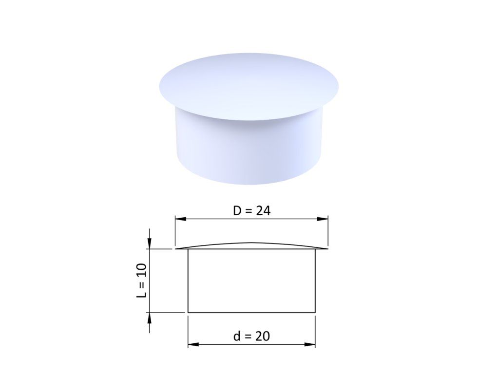 Vnútorná krytka guľatá ø 24 mm, otvor ø 20 mm, biela, plast