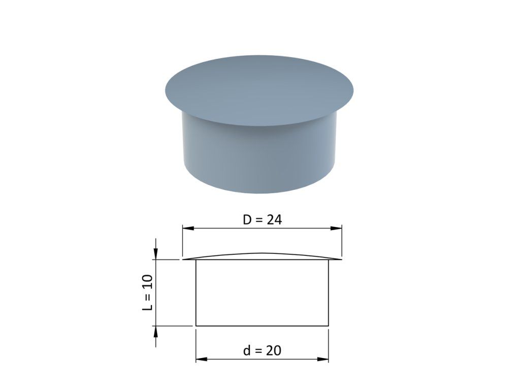 Vnútorná krytka guľatá ø 24 mm, otvor ø 20 mm, sivá, plast