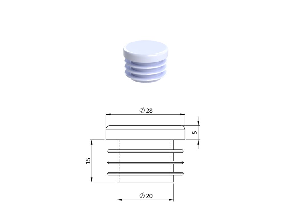 Vnútorná krytka guľatá ø 28 mm, plastová, biela