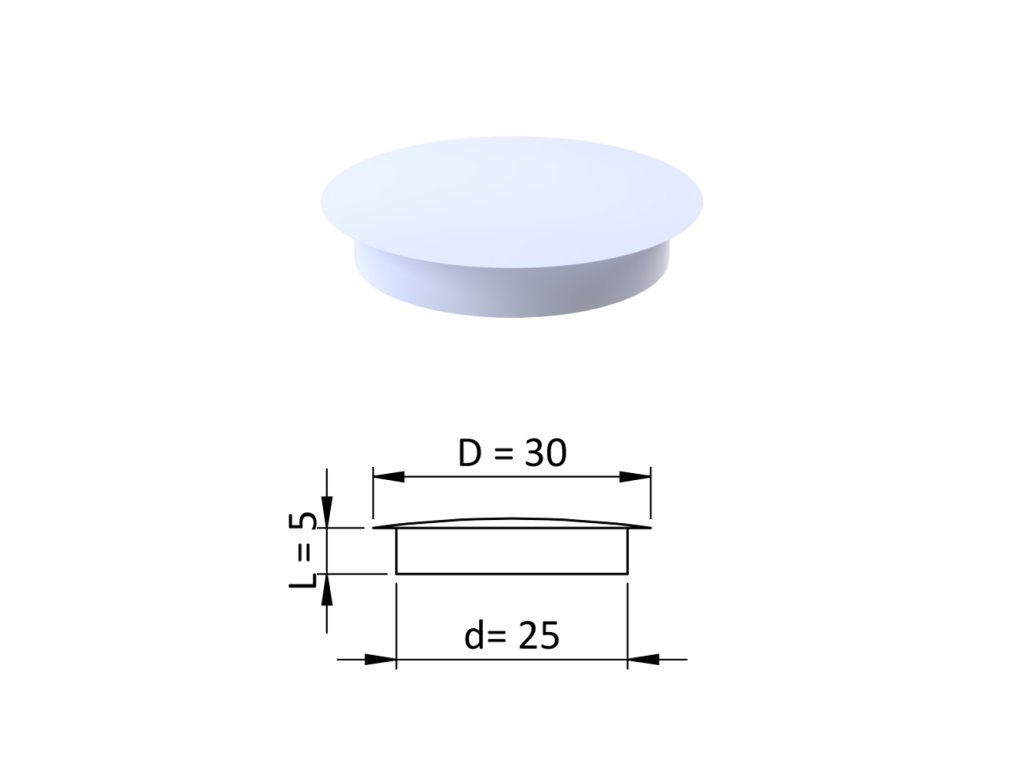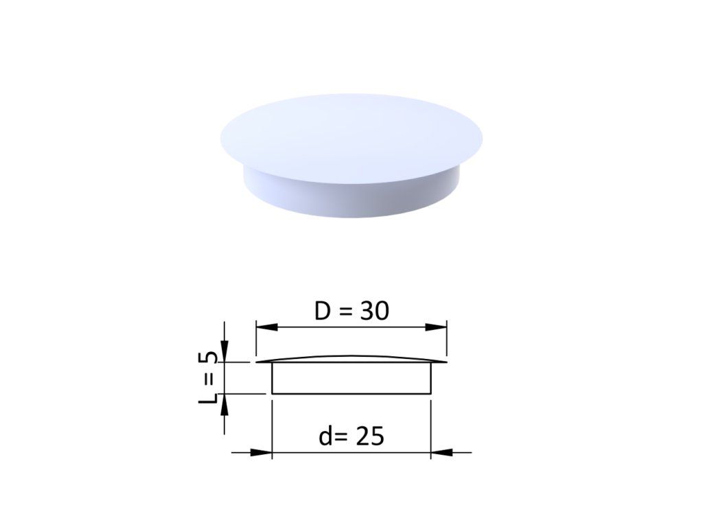 Vnútorná krytka guľatá ø 30 mm, otvor ø 25 mm, biela, plast