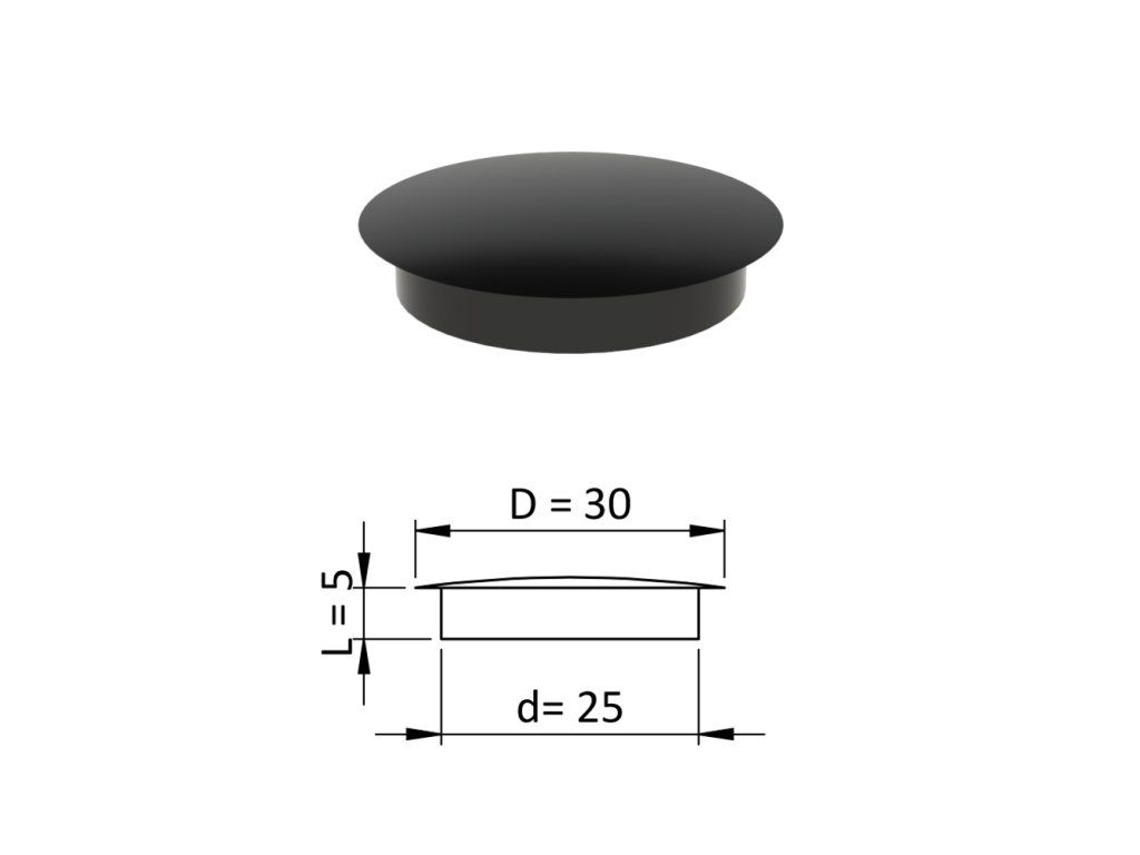 Vnútorná krytka guľatá ø 30 mm, otvor ø 25 mm, čierna, plast