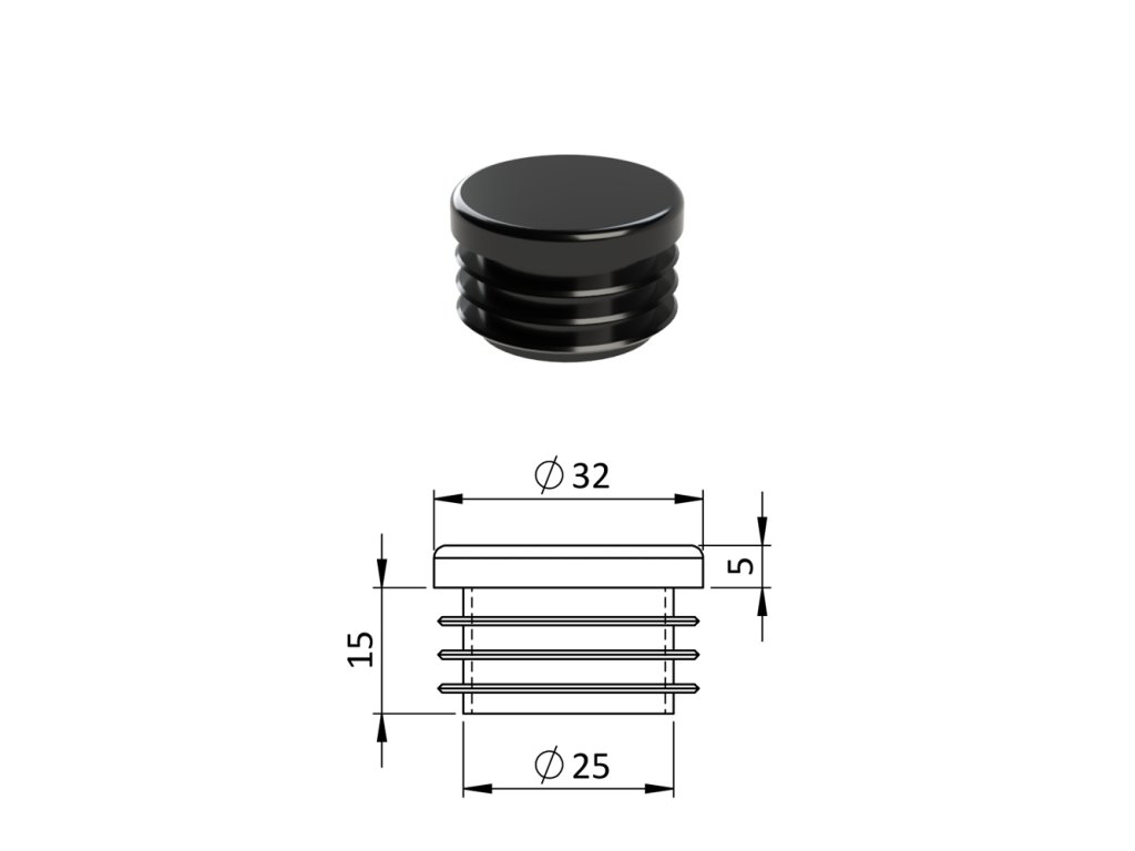 Vnútorná krytka guľatá ø 32 mm, plastová, čierna