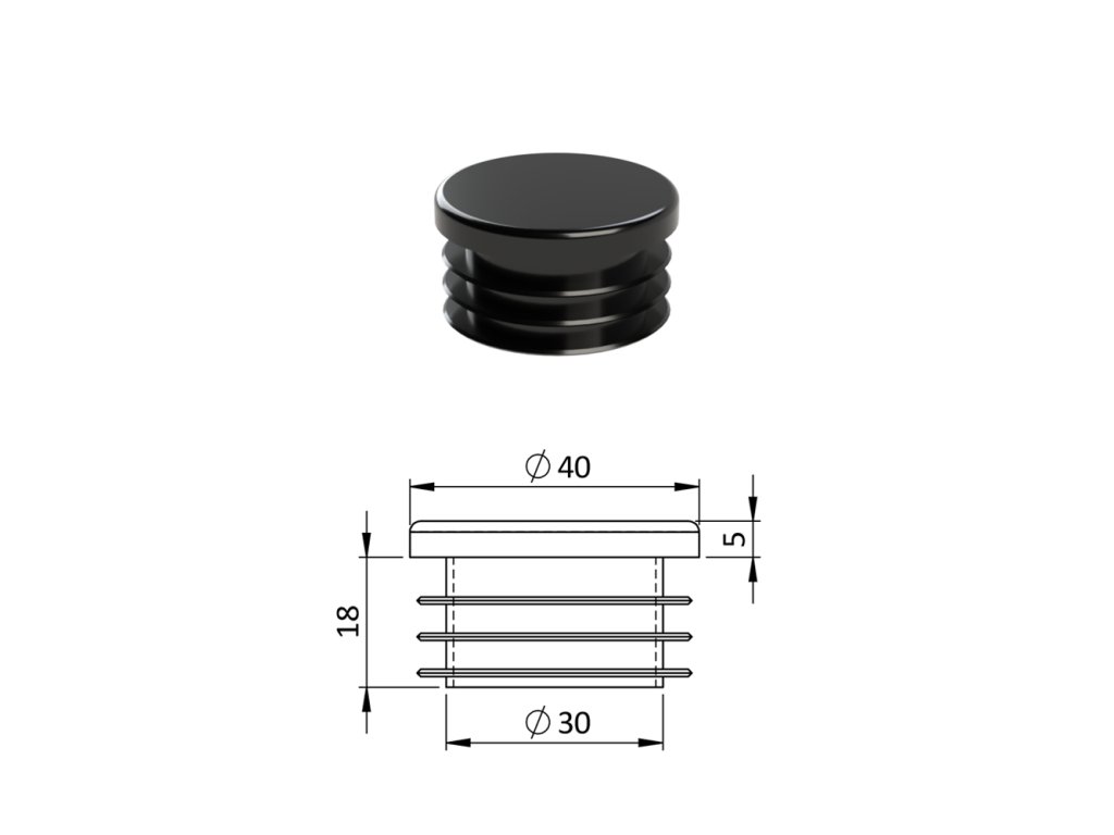 Vnútorná krytka guľatá ø 40 mm, plastová, čierna