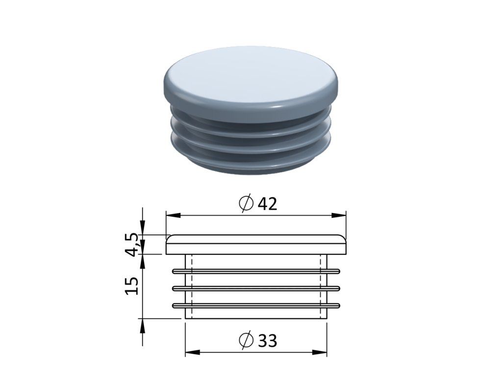 Vnútorná krytka guľatá ø 42 mm, plastová, sivá