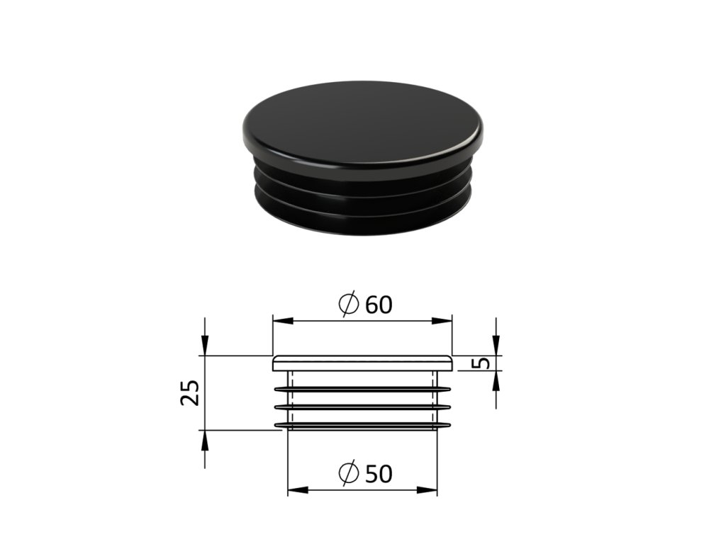 Vnútorná krytka guľatá ø 60 mm, plastová, čierna