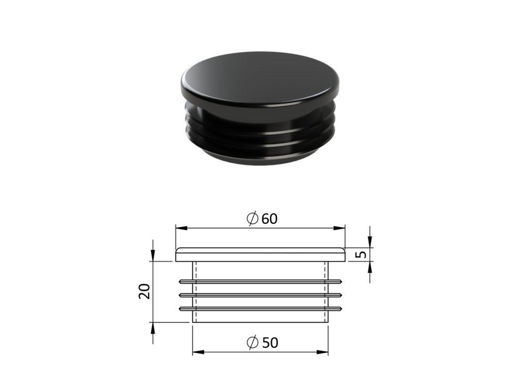 Vnútorná krytka guľatá ø 60 mm plastová, čierna