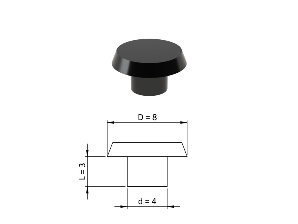 Vnútorná krytka guľatá ø 8 mm, otvor ø 4 mm, čierna, plast