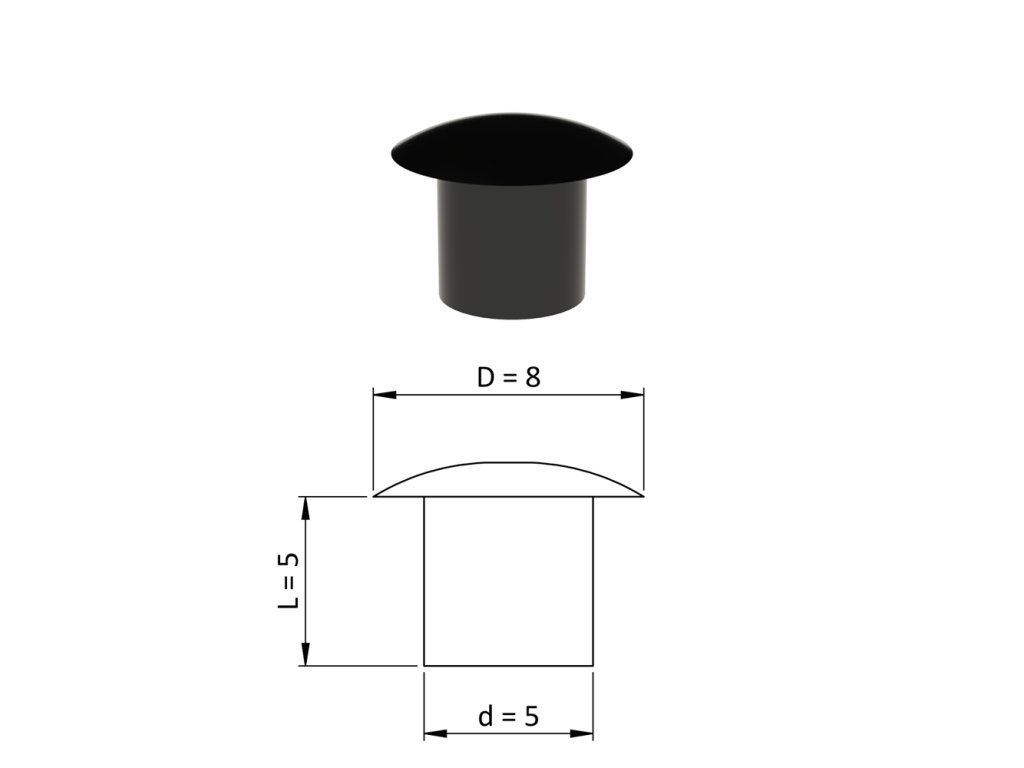 Vnútorná krytka guľatá ø 8 mm, otvor ø 5 mm, čierna, plast