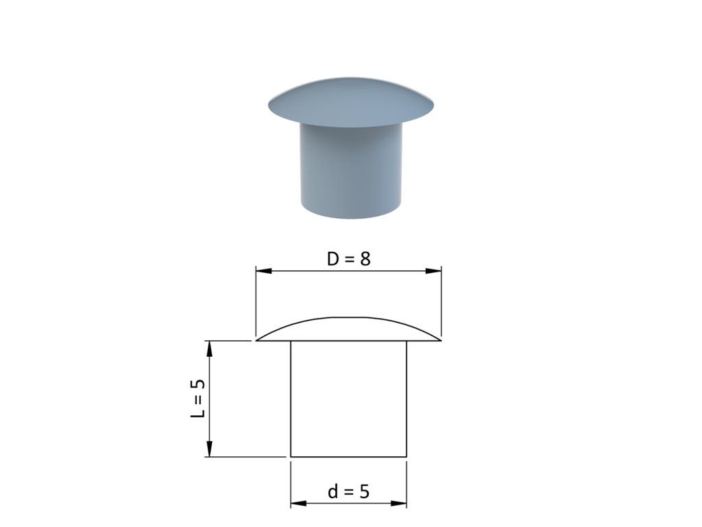 Vnútorná krytka guľatá ø 8 mm, otvor ø 5 mm, sivá, plast