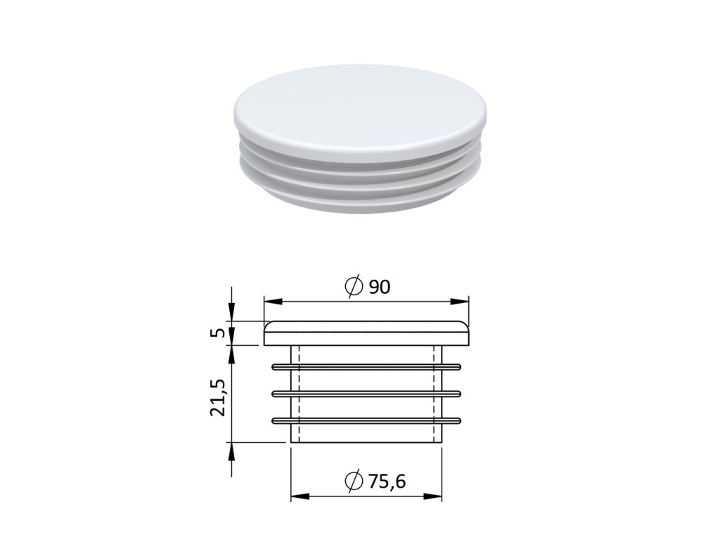 Vnútorná krytka guľatá ø 90 mm, plastová, biela