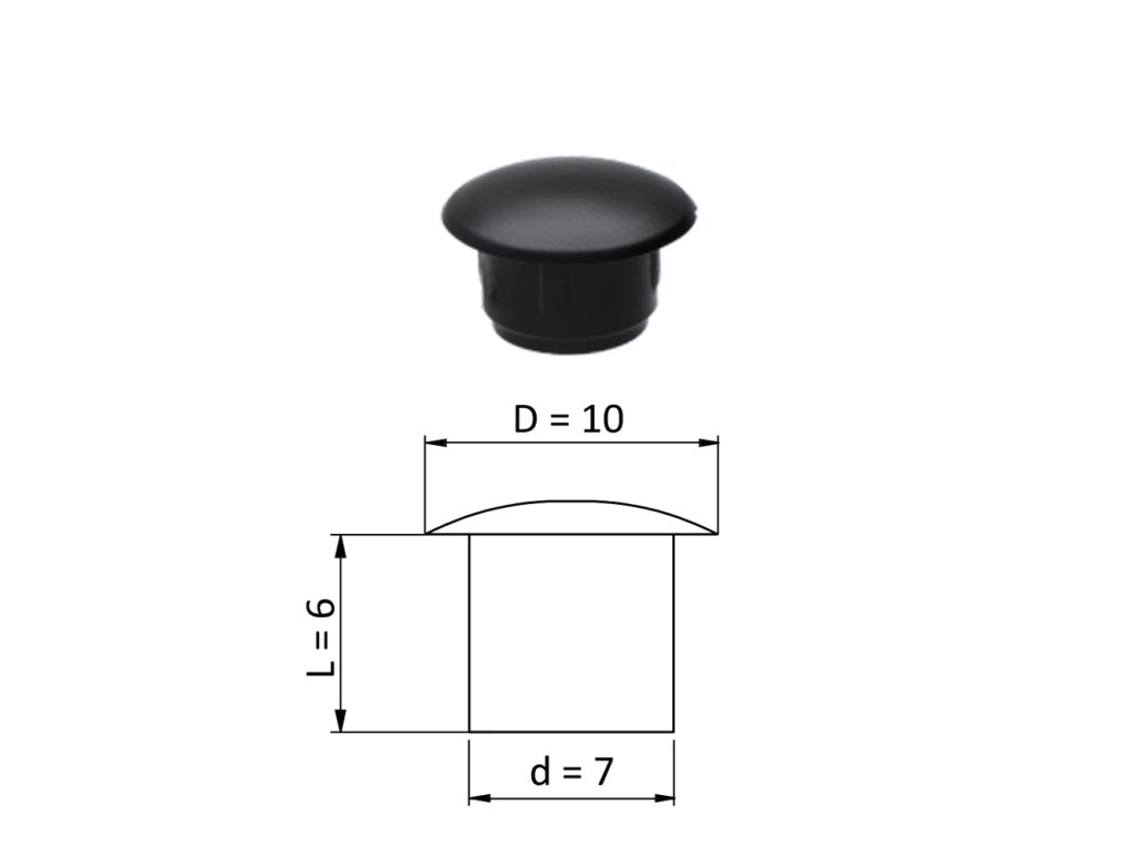 Vnútorná plastová krytka guľatá ø 10 mm, otvor ø 7 mm