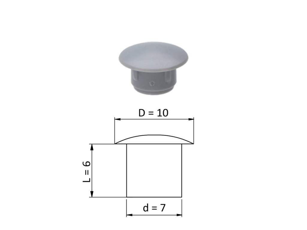Vnútorná plastová krytka guľatá ø 10 mm, otvor ø 7 mm