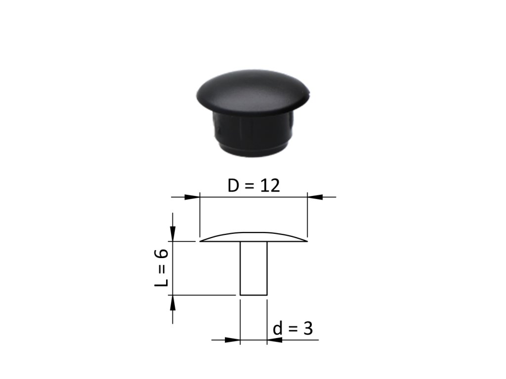 Vnútorná plastová krytka guľatá ø 12 mm, otvor ø 3 mm