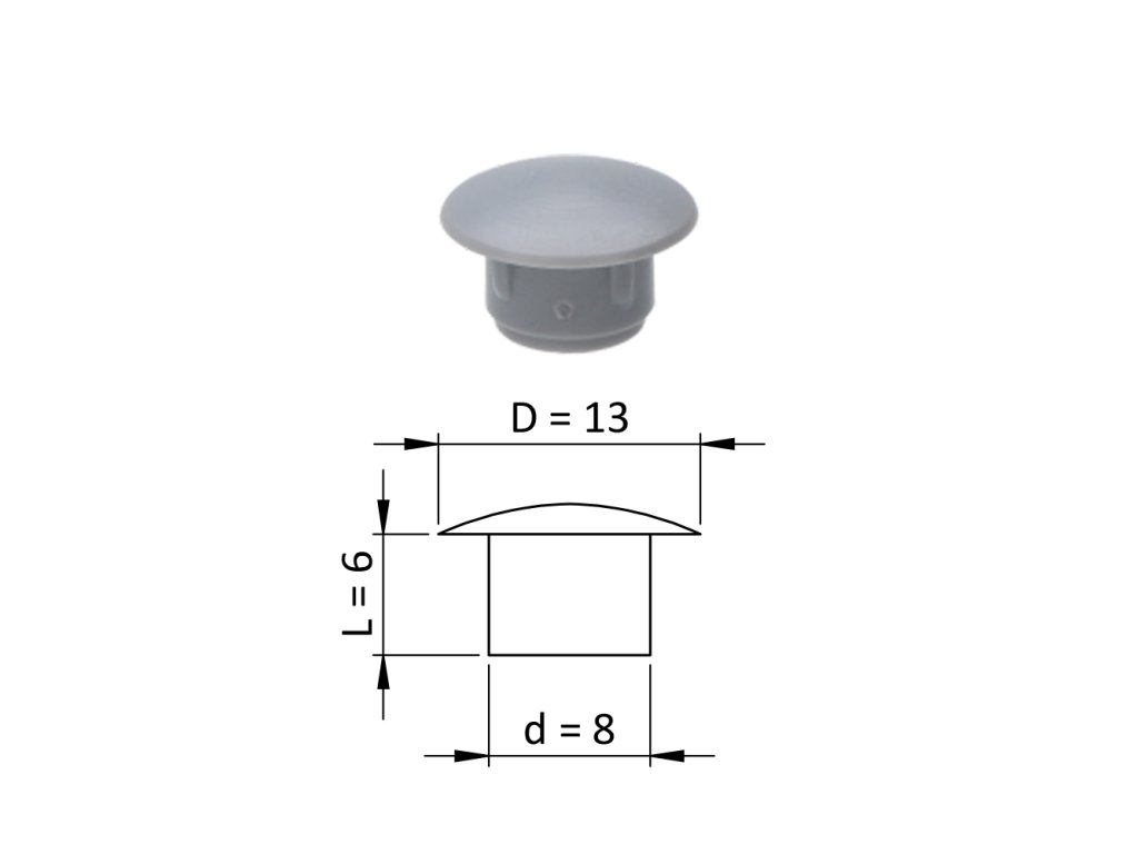 Vnútorná plastová krytka guľatá ø 13 mm, otvor ø 8 mm