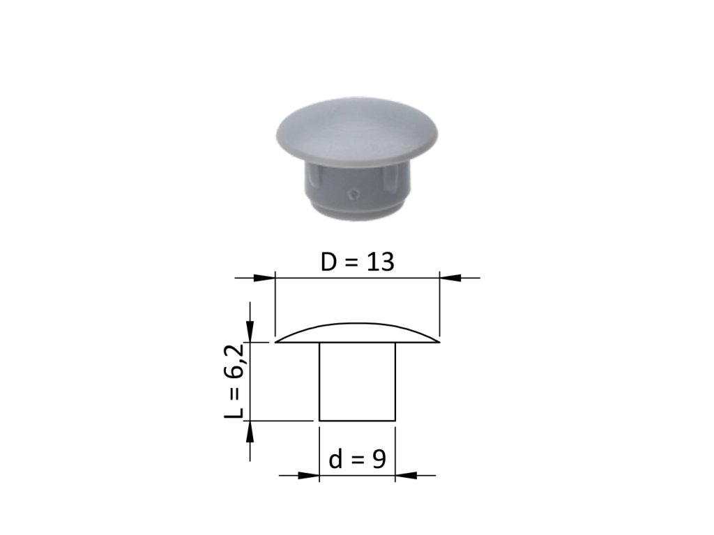 Vnútorná plastová krytka guľatá ø 13 mm, otvor ø 9 mm