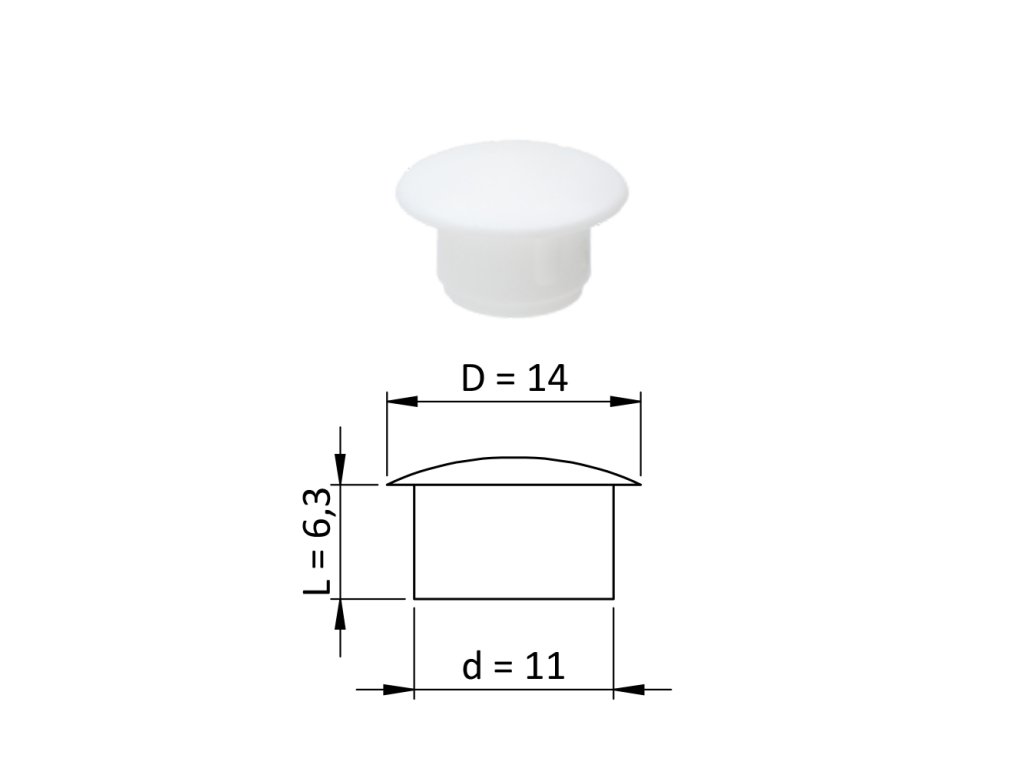 Vnútorná plastová krytka guľatá ø 14 mm, otvor ø 11 mm