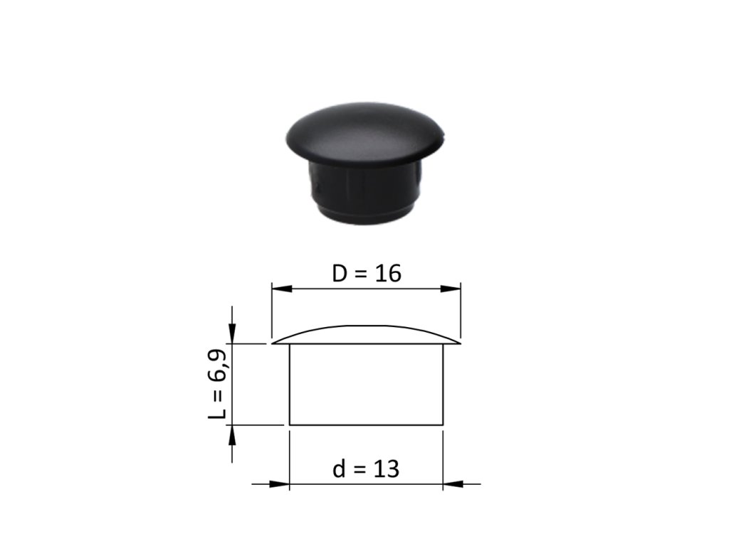 Vnútorná plastová krytka guľatá ø 16 mm, otvor ø 13 mm