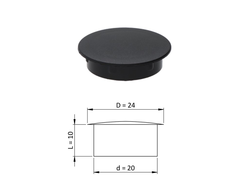 Vnútorná plastová krytka guľatá ø 24 mm, otvor ø 20 mm