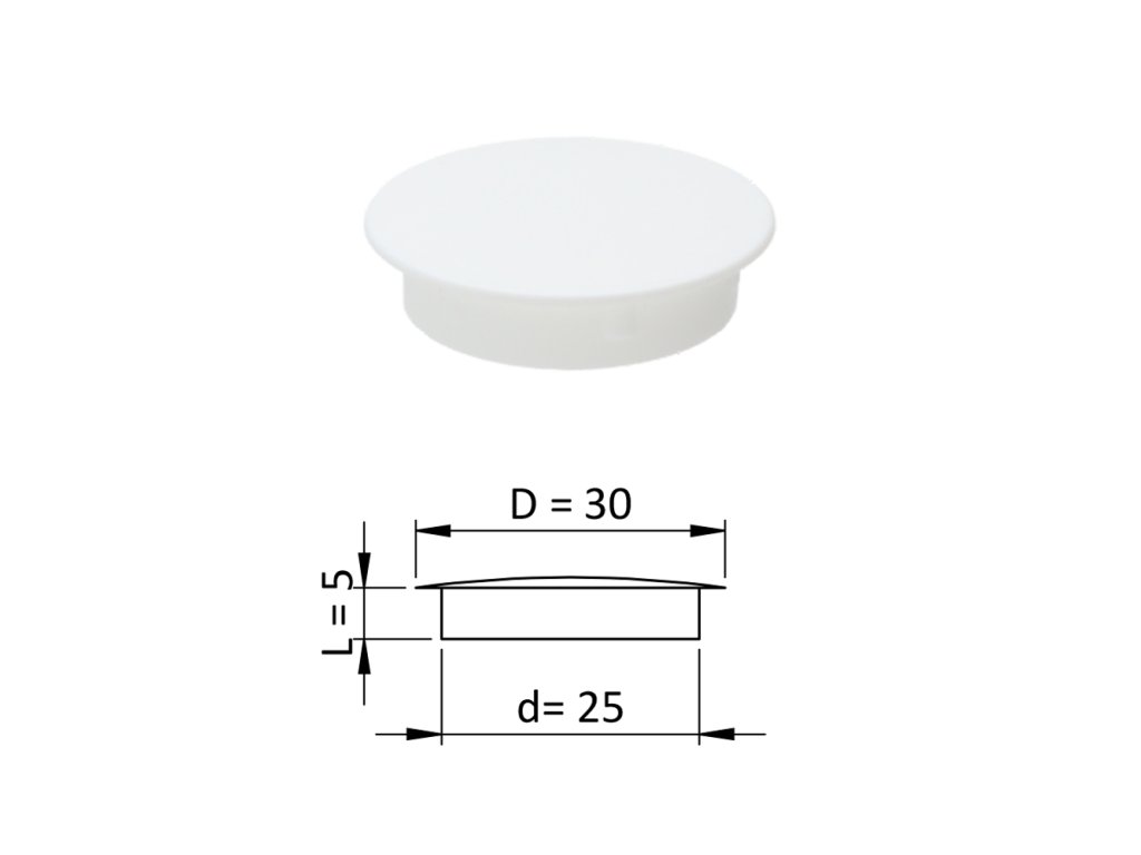Vnútorná plastová krytka guľatá ø 30 mm, otvor ø 25 mm
