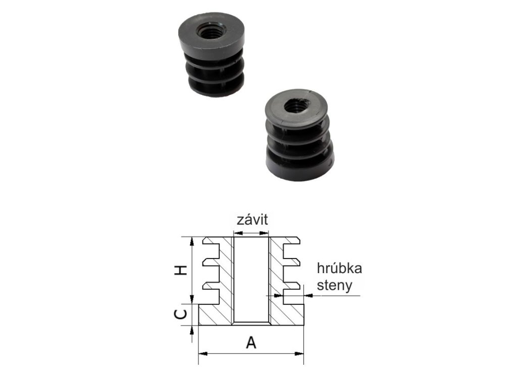 M8,A-40mm,H-20mm,C-6.2mm,čierna,Hrúbka steny-1-1.5mm,Plastová kruhovo-rúrková zátka zo závitom PE