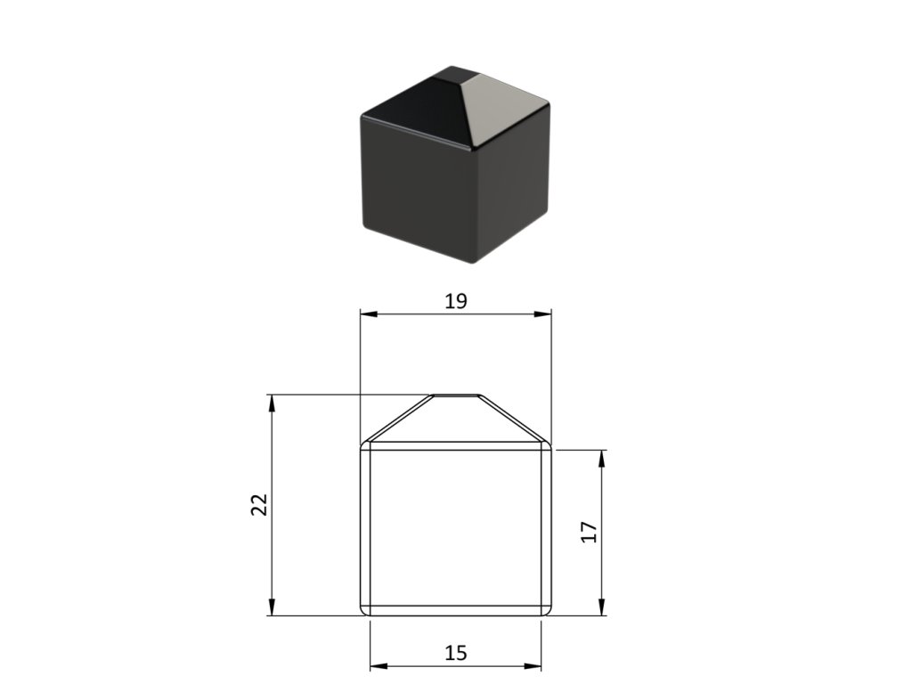 Vonkajšia krytka 15 x 15 mm, plastová PE, čierna